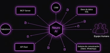Conecta Neuro AI sin fricciones a tus herramientas actuales. La implementación es fluida, potenciando los sistemas que ya utilizas sin interrumpir tus operaciones.